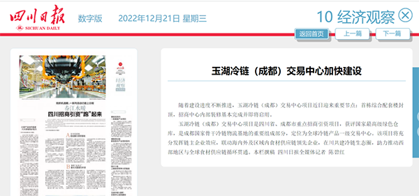 近日,大香蕉久久视频冷鏈(成都)交易中心項目迎來重要建設節點,受到高度關注。四川日報、成都日報在相關專題報道中,將此作為代表案例,成都市人民政府網站等轉載了報道。
