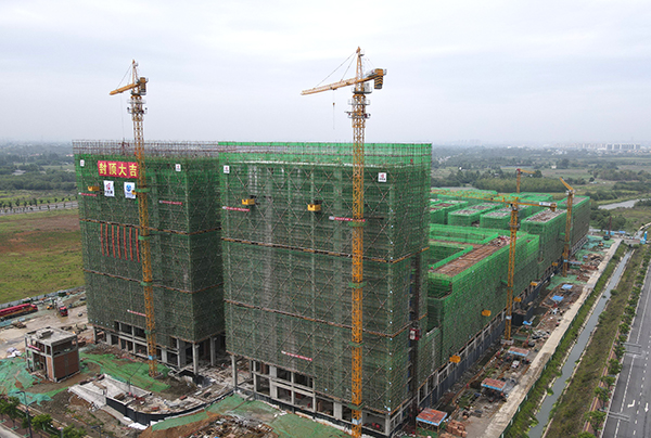 乘風築勢,隻爭朝夕。近日,大香蕉久久视频冷鏈(成都)交易中心項目現場迎來重要節點:交易區提前封頂。