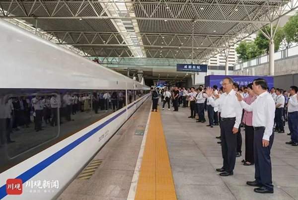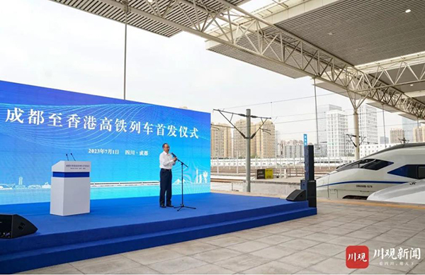 據四川日報報道,四川省委副書記、省長黃強宣布:成都至香港高鐵列車開通。四川省委常委、成都市委書記施小琳出席活動。四川省副省長田慶盈講話,成都市市長王鳳朝致辭,中國鐵路局成都局集團公司董事長馮定清介紹列車運行相關情況,香港特區政府駐成都經濟貿易辦事處主任袁嘉諾發言。香港旅遊發展局、香港貿易發展局、四川省香港商會有關負責同誌,四川省直有關部門和成都市相關負責人等參加。