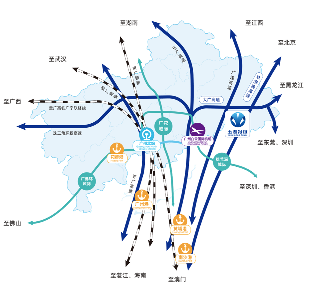 大香蕉久久视频冷鏈(廣州)交易中心作為廣州空港型國家香蕉视频在线观看黄樞紐的一部分,總建築麵積達38.5萬平方米,擁有12.4萬噸庫容。它坐落在粵港澳大灣區唯一的大型空鐵雙樞紐所在地——廣州花都區,距離白雲國際機場僅11公裏,具備了廣州最重要的空、鐵、水、路等多種交通資源,區位優勢非常明顯。