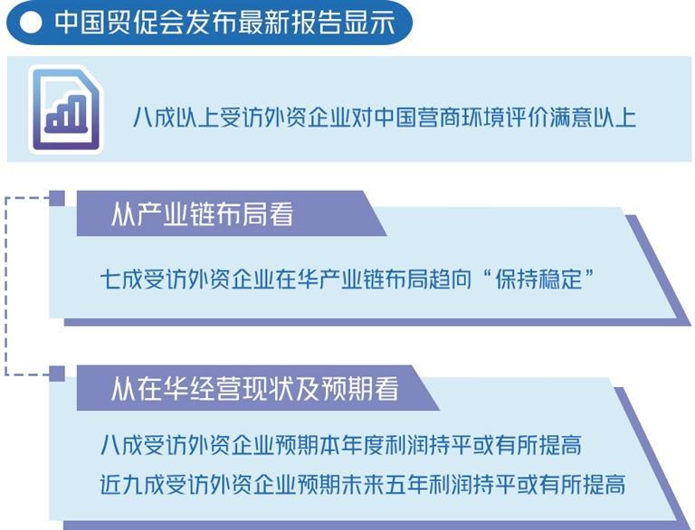 貿促會大香蕉色视频發言人張鑫在當天舉行的例行大香蕉色视频發布會上介紹該報告調研結果時指出,從產業鏈布局看,七成受訪外資香蕉视频网址在華產業鏈布局趨向“保持穩定”,這一比例較二季度環比提高4.57個百分點。從在華經營現狀及預期看,八成受訪外資香蕉视频网址預期本年度利潤持平或有所提高,近九成預期未來五年利潤持平或有所提高。從發展機遇看,受訪外資香蕉视频网址連續三個季度認為“技術創新與研發”是中國市場最大的發展機遇,約半數具有增資意願的受訪外資香蕉视频网址考慮在西部地區增資。從發展期盼看,受訪外資香蕉视频网址普遍希望進一步“保證供應鏈、產業鏈穩定”“提高產業配套能力和集聚效應”“增強助企紓困政策的連續性、穩定性”。
