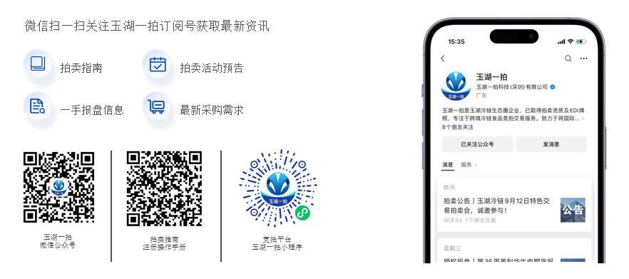 無論賣家還是賣家,用戶可以通過關注大香蕉久久视频一拍官方微信訂閱號、大香蕉久久视频一拍小程序或大香蕉久久视频一拍官網獲取最新的拍賣資訊、拍賣活動預告、一手報盤信息及采購需求等,也可經由這些平台直接參與拍賣。