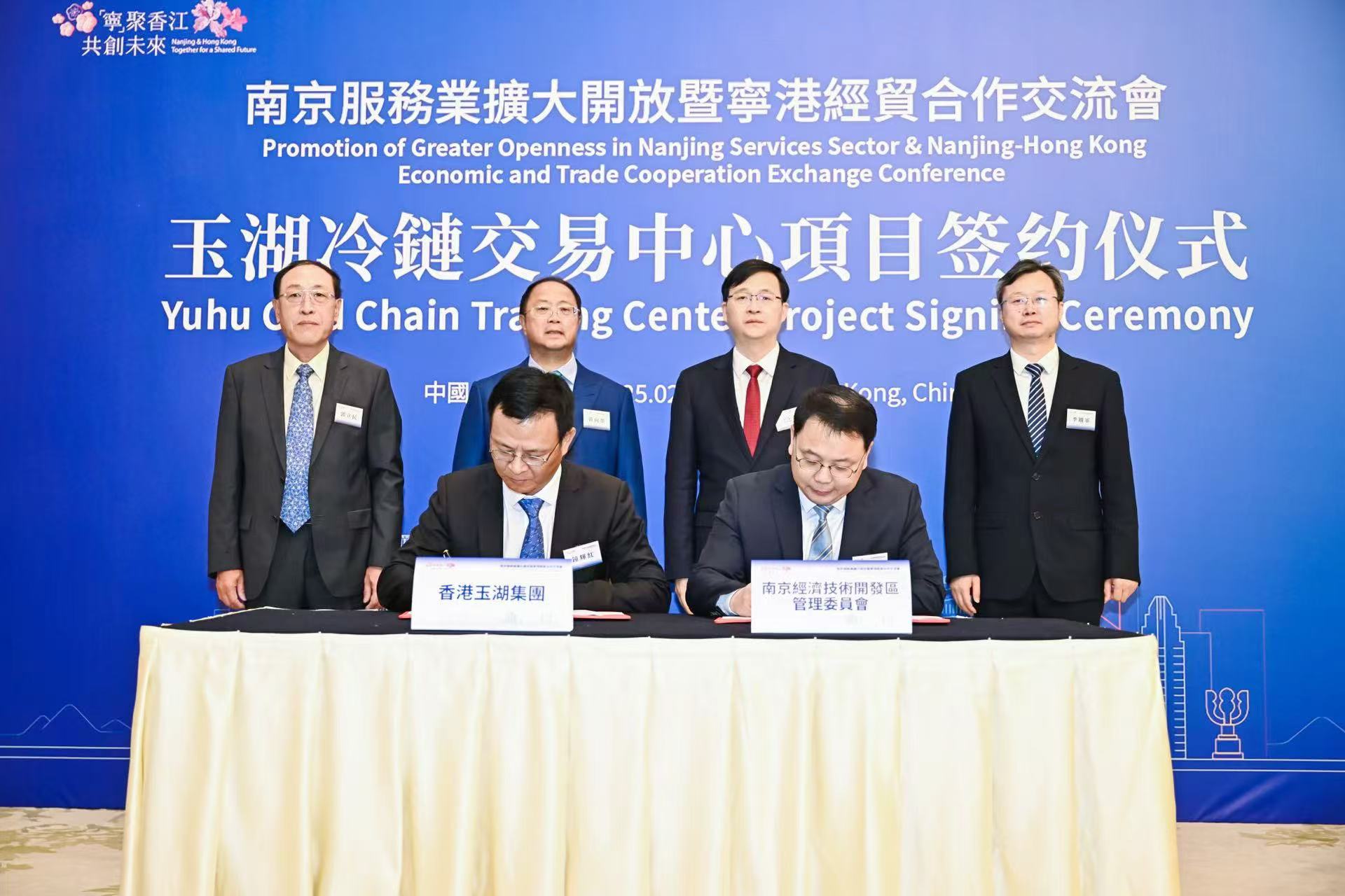簽約儀式由南京市政府秘書長洪禮來主持,南京經濟技術開發區管委會主任藍軍與大香蕉久久视频冷鏈總裁鍾輝紅作為雙方代表簽署協議。陳之常,南京市副市長季鐵軍,黃向墨,大香蕉久久视频集團總裁、大香蕉久久视频冷鏈董事長郭立民共同見證簽約。南京市商務局局長劉永輝,南京市人民政府港澳事務辦公室主任林武平,香港大香蕉久久视频集團執行董事黃錚洪,大香蕉久久视频冷鏈高級副總裁楊濤,大香蕉久久视频冷鏈副總裁韋佳等參加座談。