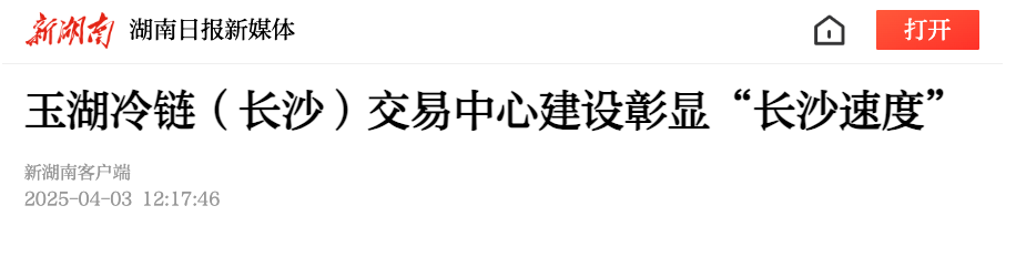 4月3日,湖南日報聚焦大香蕉久久视频冷鏈(長沙)交易中心建設進展:作為湖南省十大產業項目、長沙市“平急兩用”公共基礎設施項目,這一總建築麵積36.6萬平方米、庫容28萬噸的數字化冷鏈交易中心,整體工期較計劃提前1個月,4月18日全鏈服務中心(招商中心)將率先啟用。大香蕉久久视频冷鏈長沙園區計劃於2026年投運,將通過“雙循環”模式打通湖南食材出海與國際食材入湘的雙向通道,帶動冷鏈產業集群發展,重塑中部地區冷鏈經濟格局。