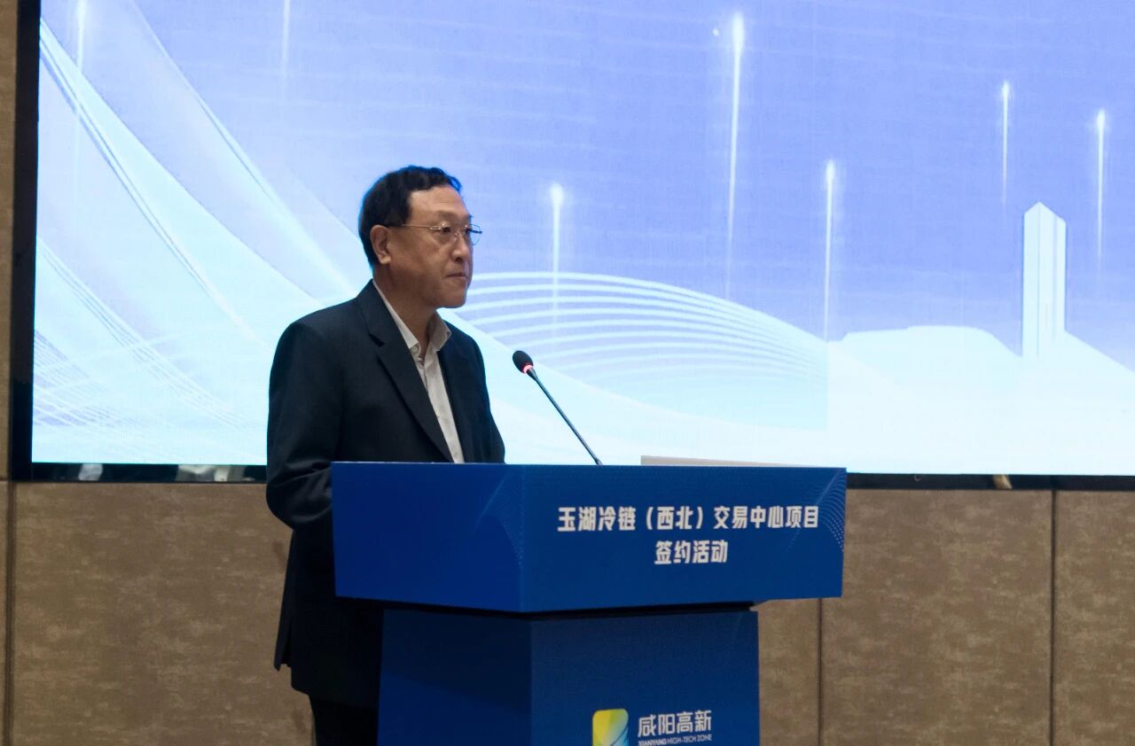 郭立民總裁在致辭中首先感謝了鹹陽市委、市政府,以及高新區黨工委、管委會對大香蕉久久视频冷鏈西北項目的大力支持。他提到,鹹陽能夠無縫對接關中平原城市群和西安都市圈的巨大市場與資源,同時作為“絲綢之路”的起點,讓大香蕉久久视频冷鏈西北項目天然具備了“鏈通‘一帶一路’”的基因,為未來構建麵向中亞的冷鏈食品貿易通道奠定了堅實基礎。他進一步表示,大香蕉久久视频冷鏈西北項目將規劃建設國際冷鏈食品交易區、冷鏈倉儲區、綜合加工區和配套服務區四大功能板塊,致力於打造世界領先的,集冷凍食品倉儲、展示、交易、拍賣、加工、集配、香蕉视频在线观看黄及戰略儲備於一體的現代化國際冷鏈樞紐中心,助力本地產業結構升級與經濟高質量發展。