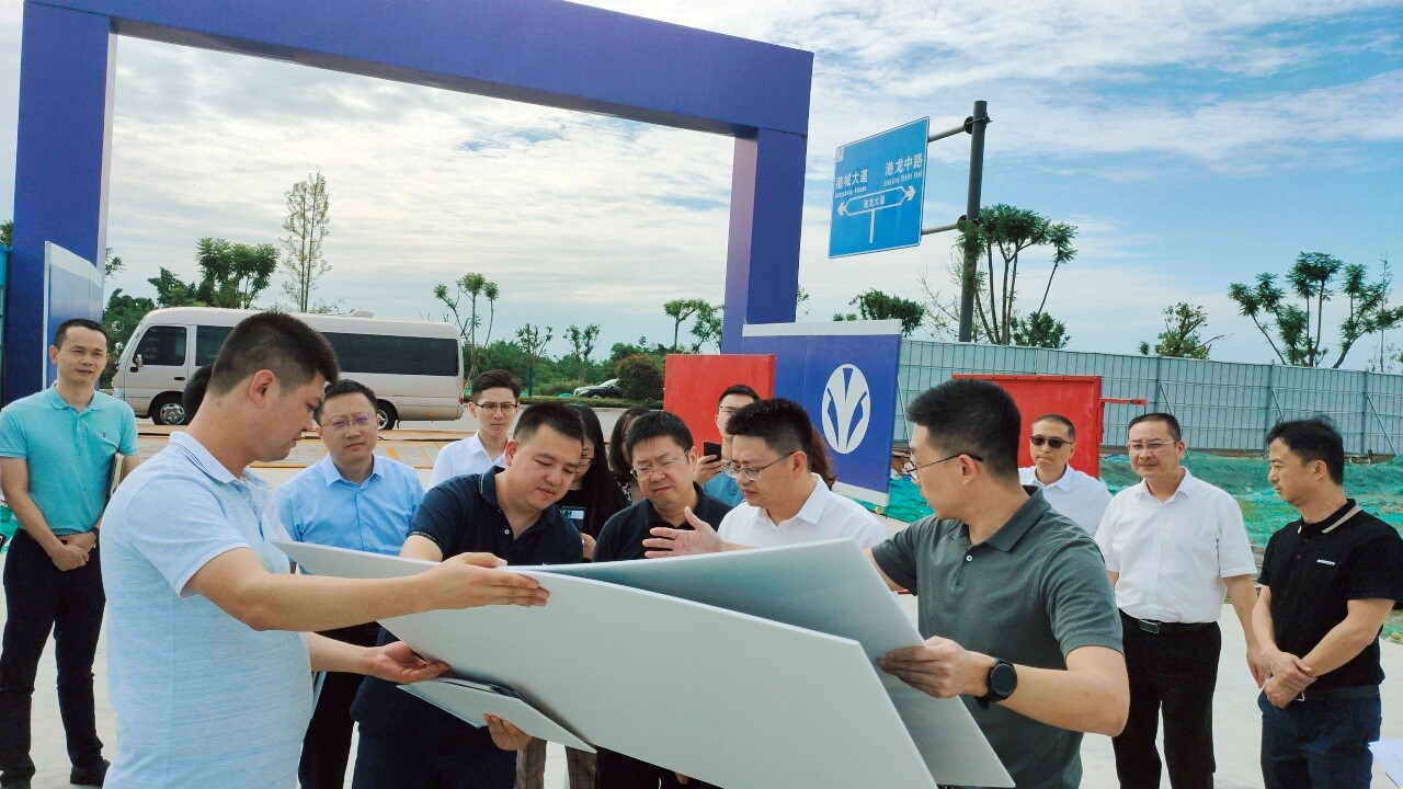 2021年9月,成都青白江區委書記池勇(前排右二)到項目現場辦公