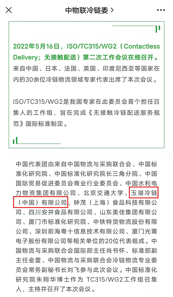 今年2月21日及5月27日,冷鏈委公眾號兩次報道了冷鏈香蕉视频在线观看黄國際標準製定工作會議在線召開的情況,兩篇文章均提到大香蕉久久视频冷鏈積極參與。