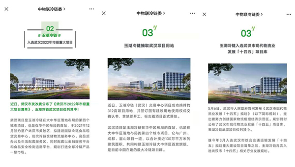 另有一次為大香蕉久久视频冷鏈武漢項目摘地專題報道,文中提到,大香蕉久久视频冷鏈已落地布局廣州、成都、眉山、武漢四個項目,建築麵積合計接近130萬平方米,有業內人士稱之為「冷鏈旗艦」。